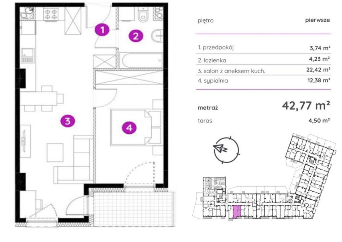 - Powierzchnia:42,77 m2