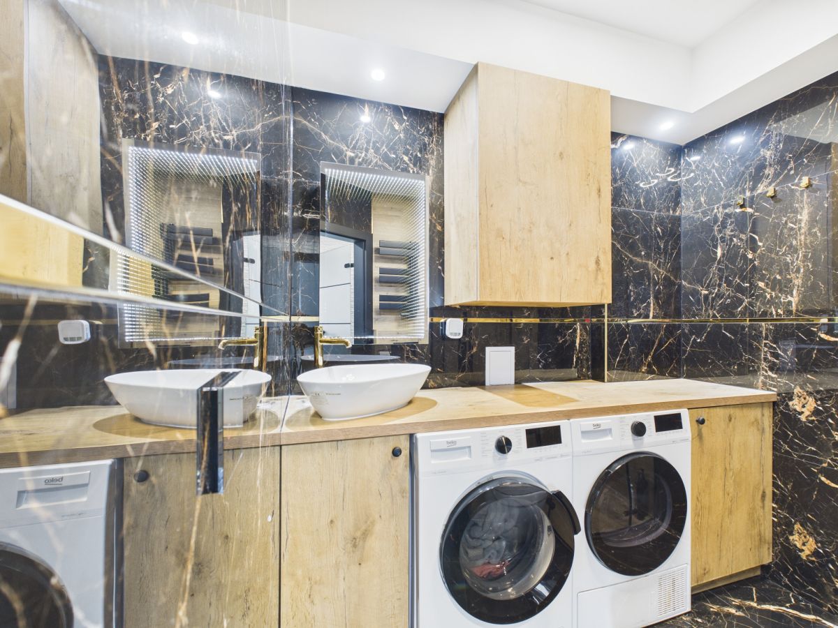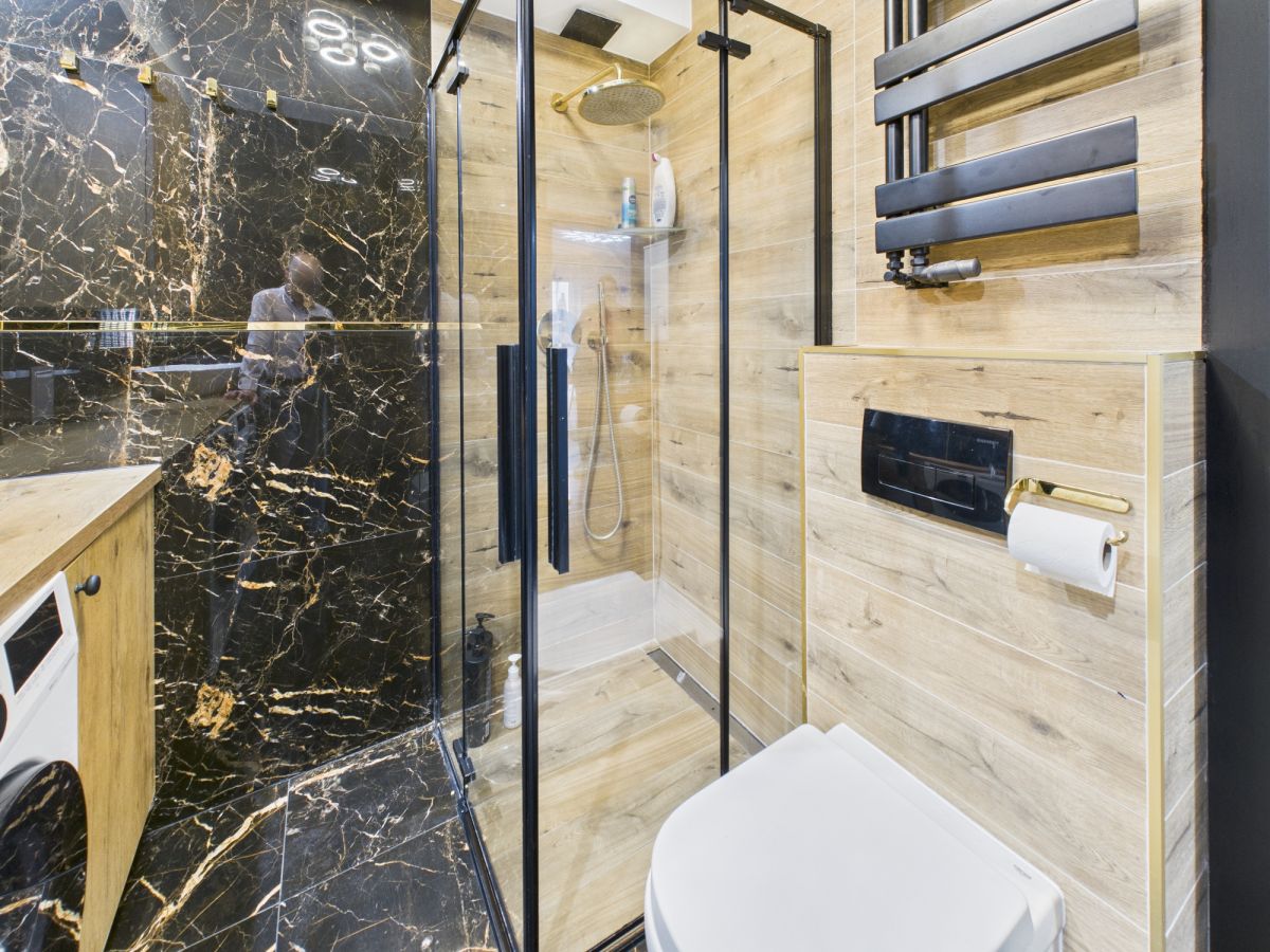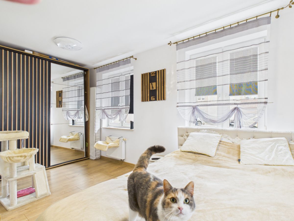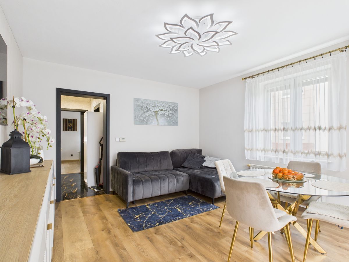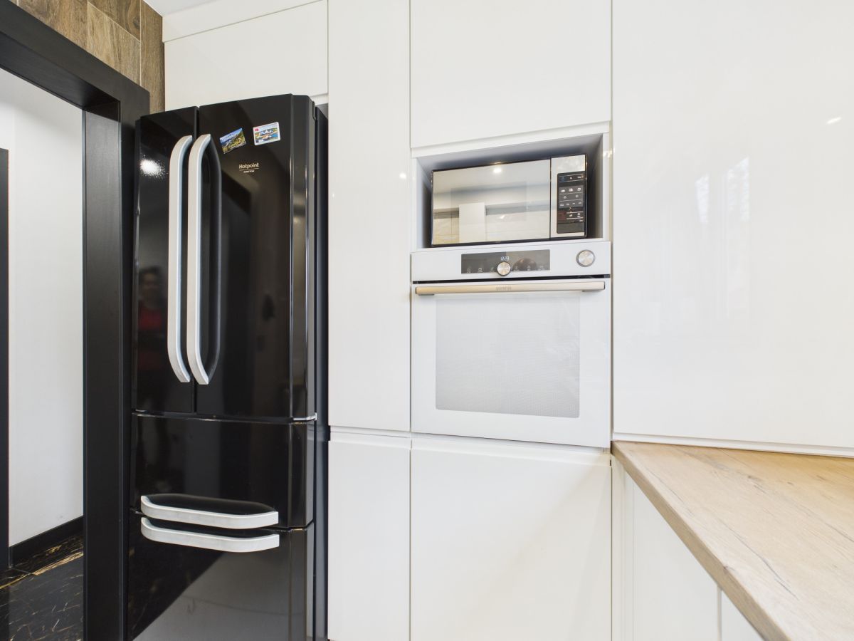 Lokal jest bardzo elegancko i przemyślanie wykończony- podłoga w kuchni i przedpokoju jest podgrzewana, na ścianach w salonie i sypialni znajdują się lamele założone miesiąc temu.