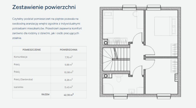 Bonusowe metry: Użytkowe 81,93 m² to tylko początek. Do dyspozycji masz dodatkowe 46 m² poddasza (po podłodze) - idealne na biuro, siłownię lub królestwo dla dzieci!