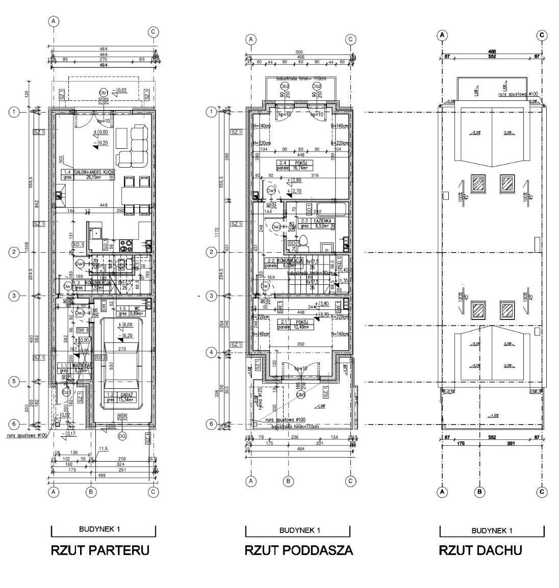 - garaż w bryle budynku